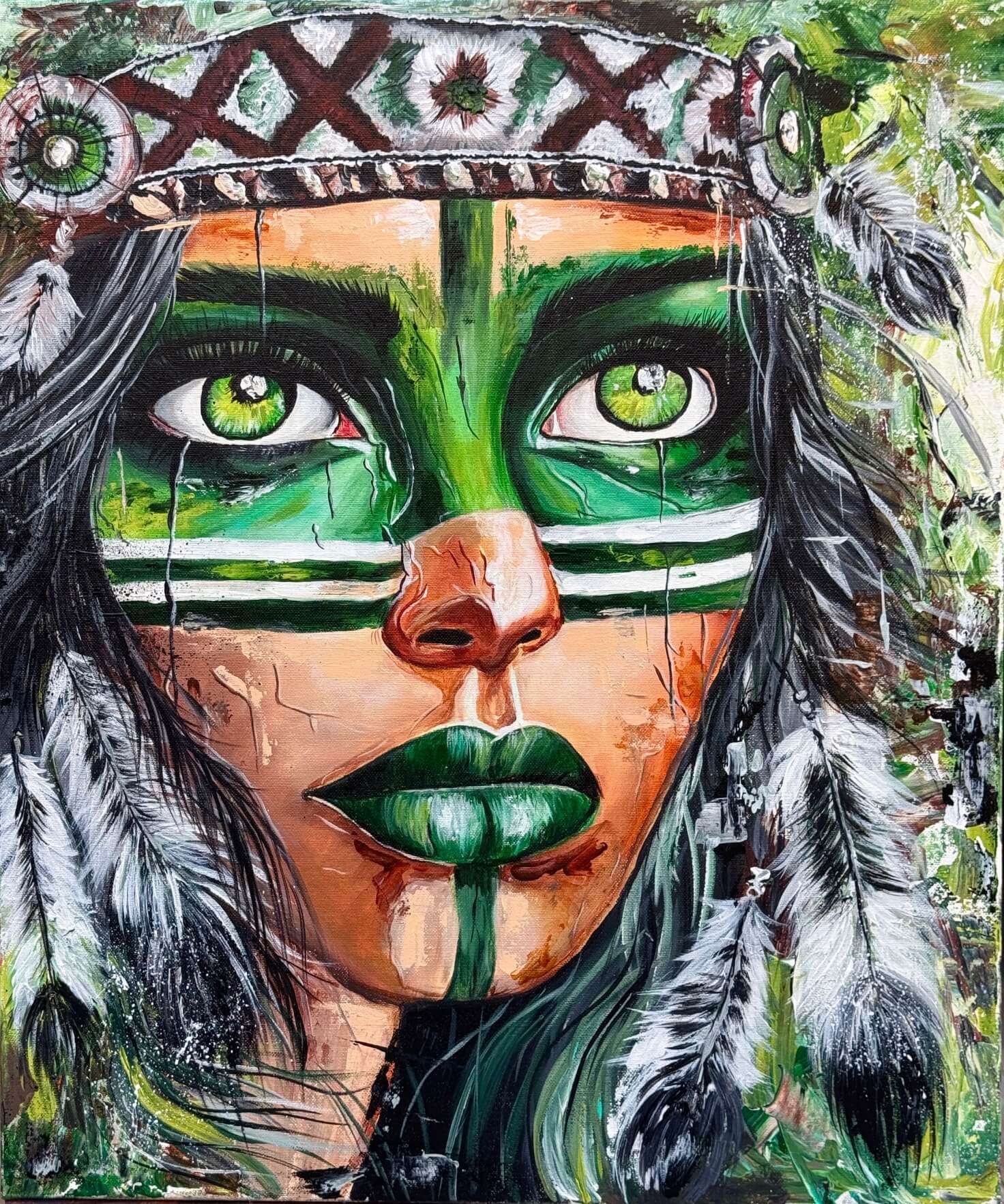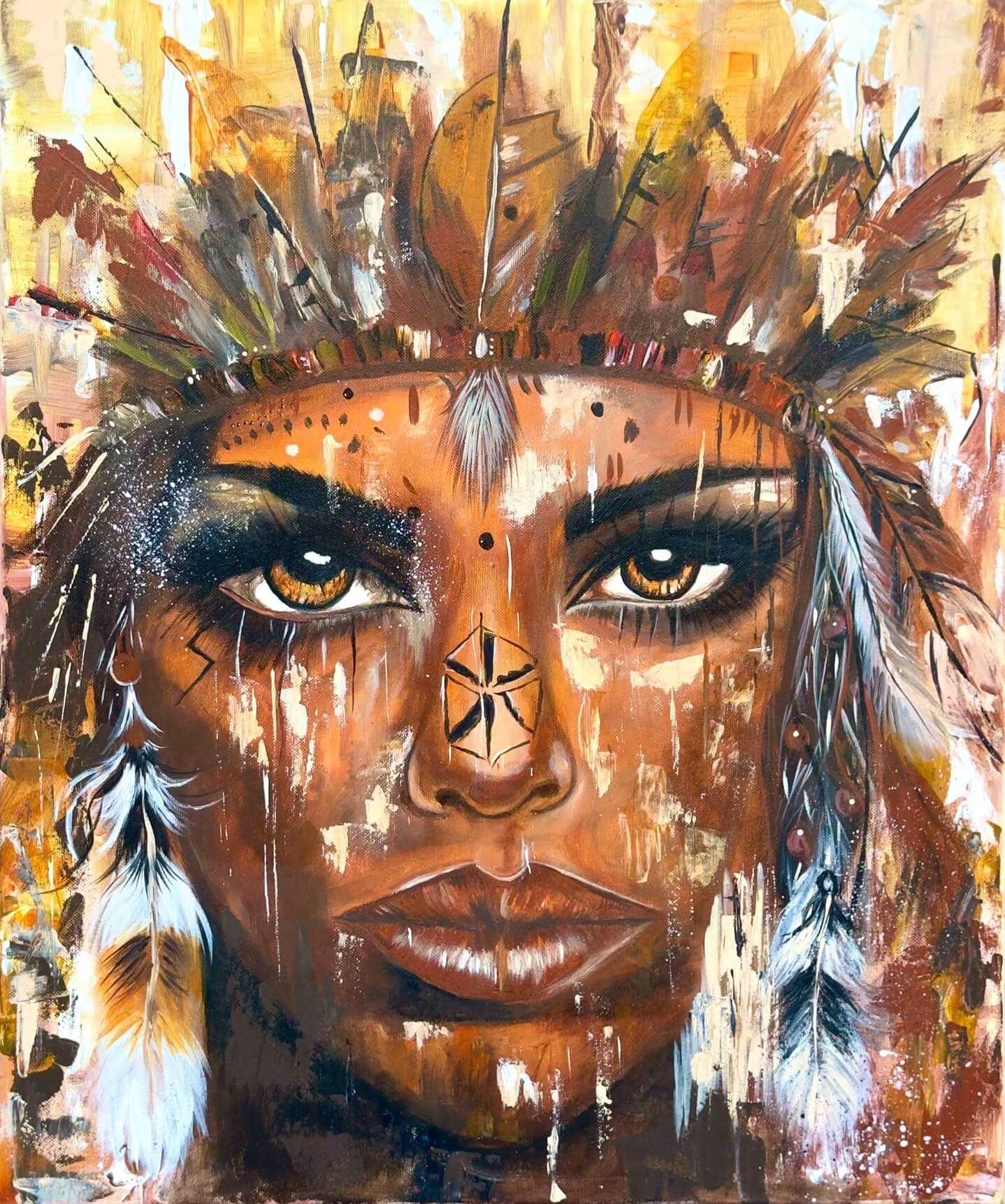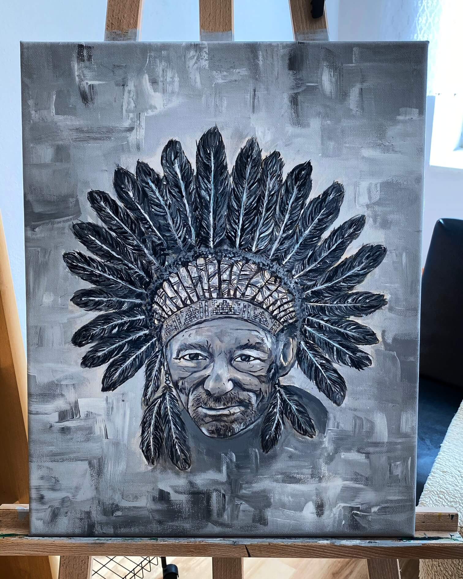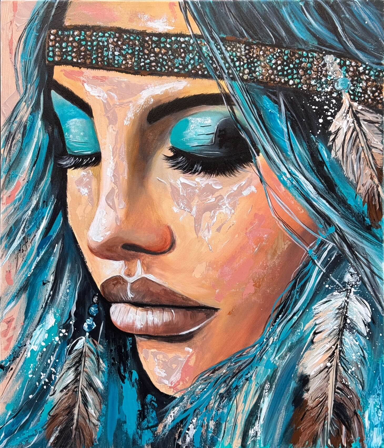 Moje cesta k malování indiánů nezačala žádným plánem ani jasnou vizí. Neřekla jsem si, že právě tohle bude můj styl. Všechno vzniklo přirozeně v roce 2019, kdy jsem namalovala svého prvního indiána jako dárek pro tátu.